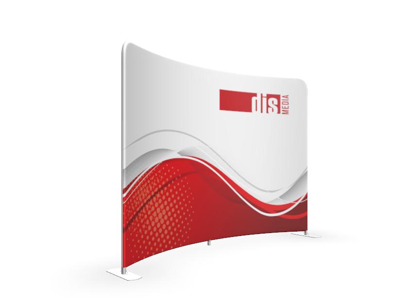 Prohnutá textilní fotostěna je nejčastěji používána pro rozdělení prostoru nebo jako fotopozadí, je mobilní a velmi snadno sestavitelná