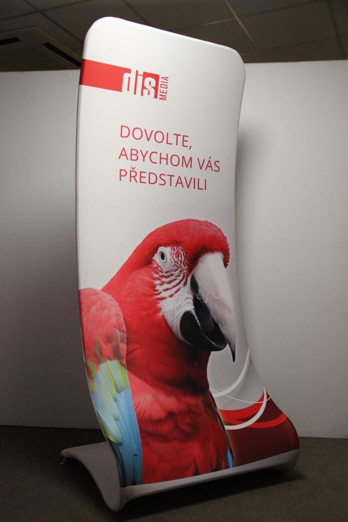 Poutač vhodný pro prezentační místo nebo pódium, spojující v sobě moderní design s bohatou nabídkou tvarů a požadavky na cenovou dostupnost