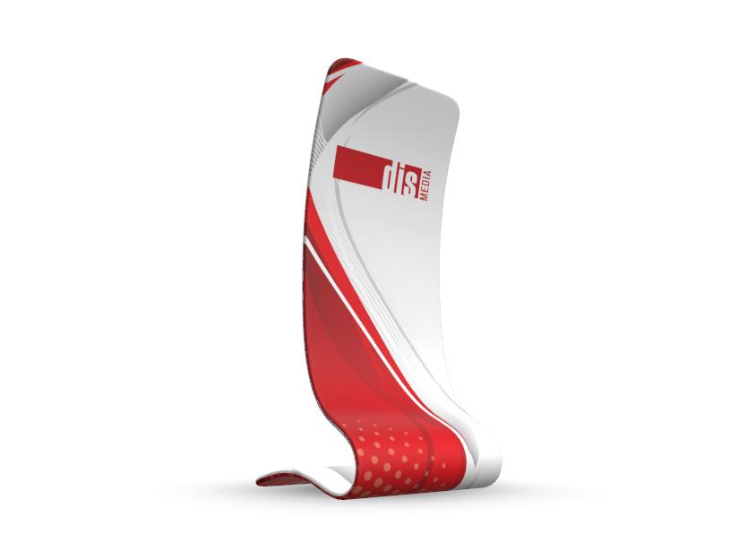 Elegantní, tvarově zajímavý textilní poutač ve tvaru S, spojující moderní design s bohatou nabídkou tvarů a požadavky na cenovou dostupnost