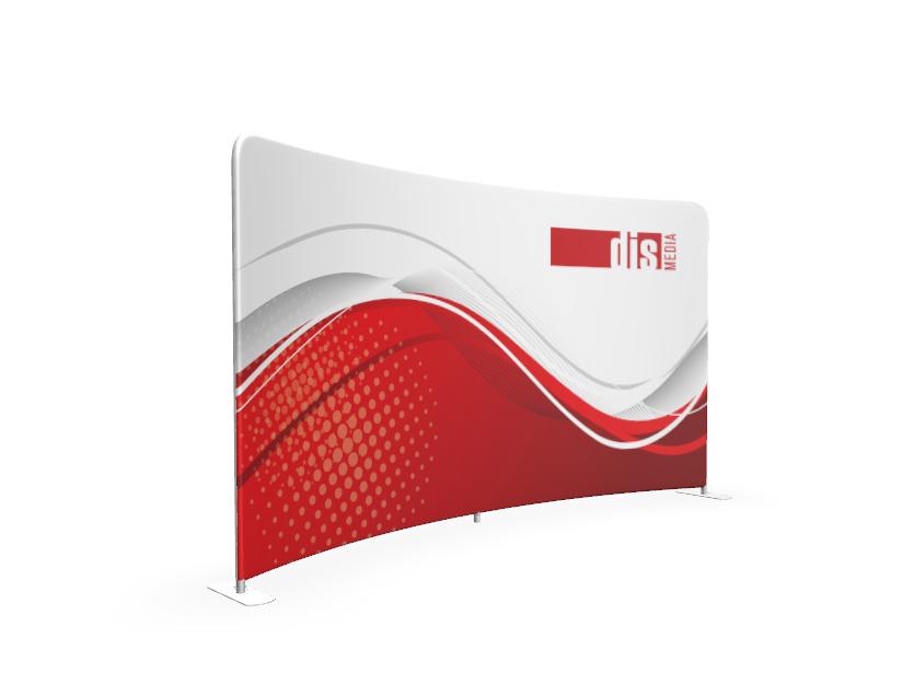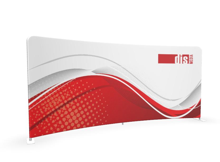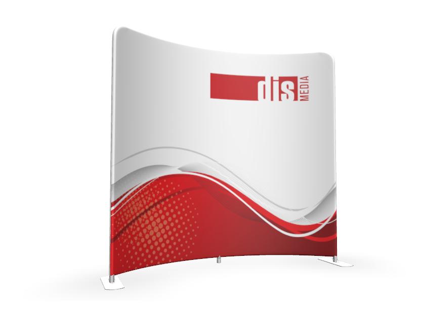 Prohnutá textilní fotostěna je nejčastěji používána pro rozdělení prostoru nebo jako fotopozadí, je mobilní a velmi snadno sestavitelná